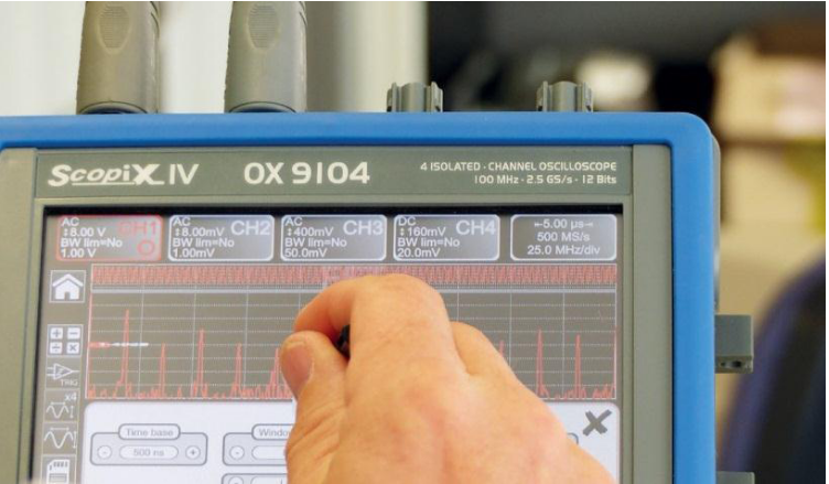 OX 9062 配有 7 英寸大屏幕、60 MHz 帶寬、2 x 600 V CAT III 隔離通道以及諧波分析儀和萬用表模式。因為這些優點,它成為工業維護應用的理想選擇。