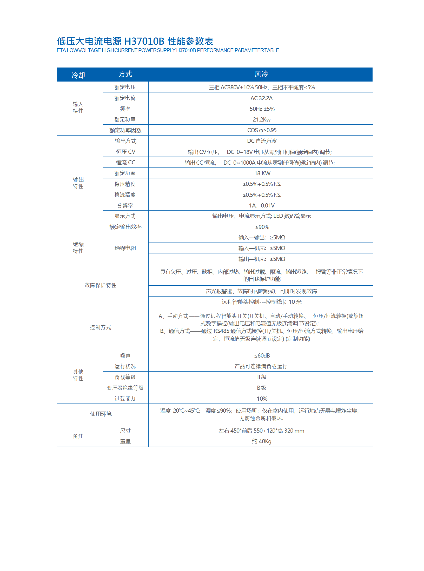 產(chǎn)品概述: 基本性能: 精確度:0.5%; 紋波:0.5%; 轉(zhuǎn)換效率:90%; 功率因數(shù):95%; 可調(diào)輸出; 恒壓、恒流; 基本功能 恒壓、恒流等定態(tài)功能; 序列、熱鍵、鍵盤鎖; RS485通訊; 遠(yuǎn)程線控; 模塊化并聯(lián)輸出,均壓和均流; 觸摸屏線控可選; 環(huán)境 溫度-20℃~45℃; 濕度≤90%; 級聯(lián) 隔離保護(hù);